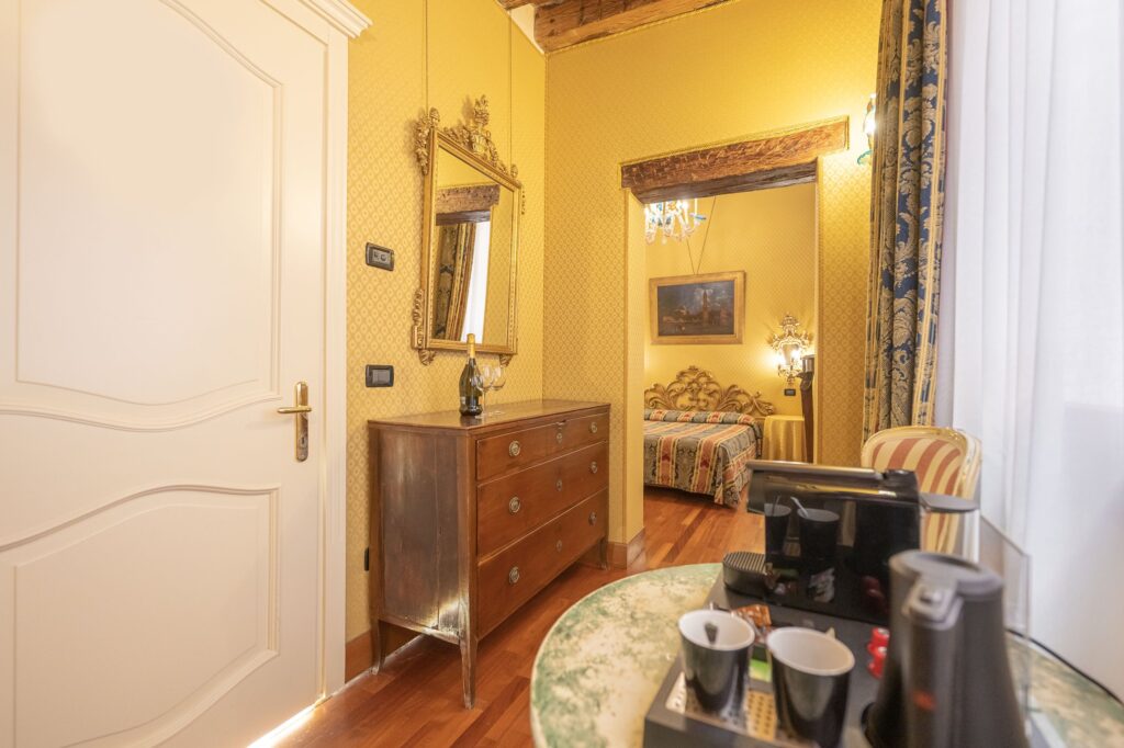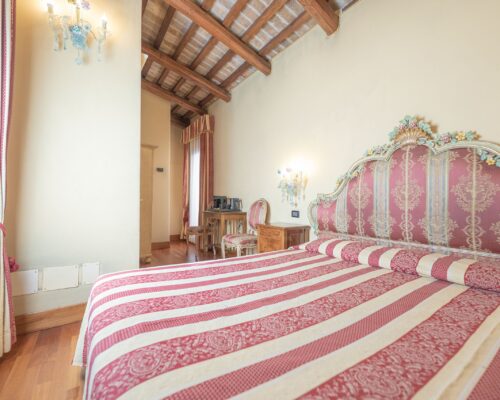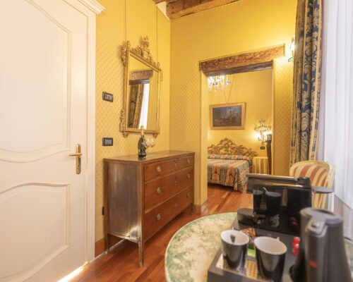 Come in un boutique hotel, ogni camera è diversa dall’altra, regalando così a ciascun ospite il piacere di un lusso esclusivo ed intimo. Piccoli universi a sé, le camere, tutte di categoria superior e deluxe, hanno il nome del colore delle sete e dei broccati: giallo ocra, rosa antico, rosso tiziano.